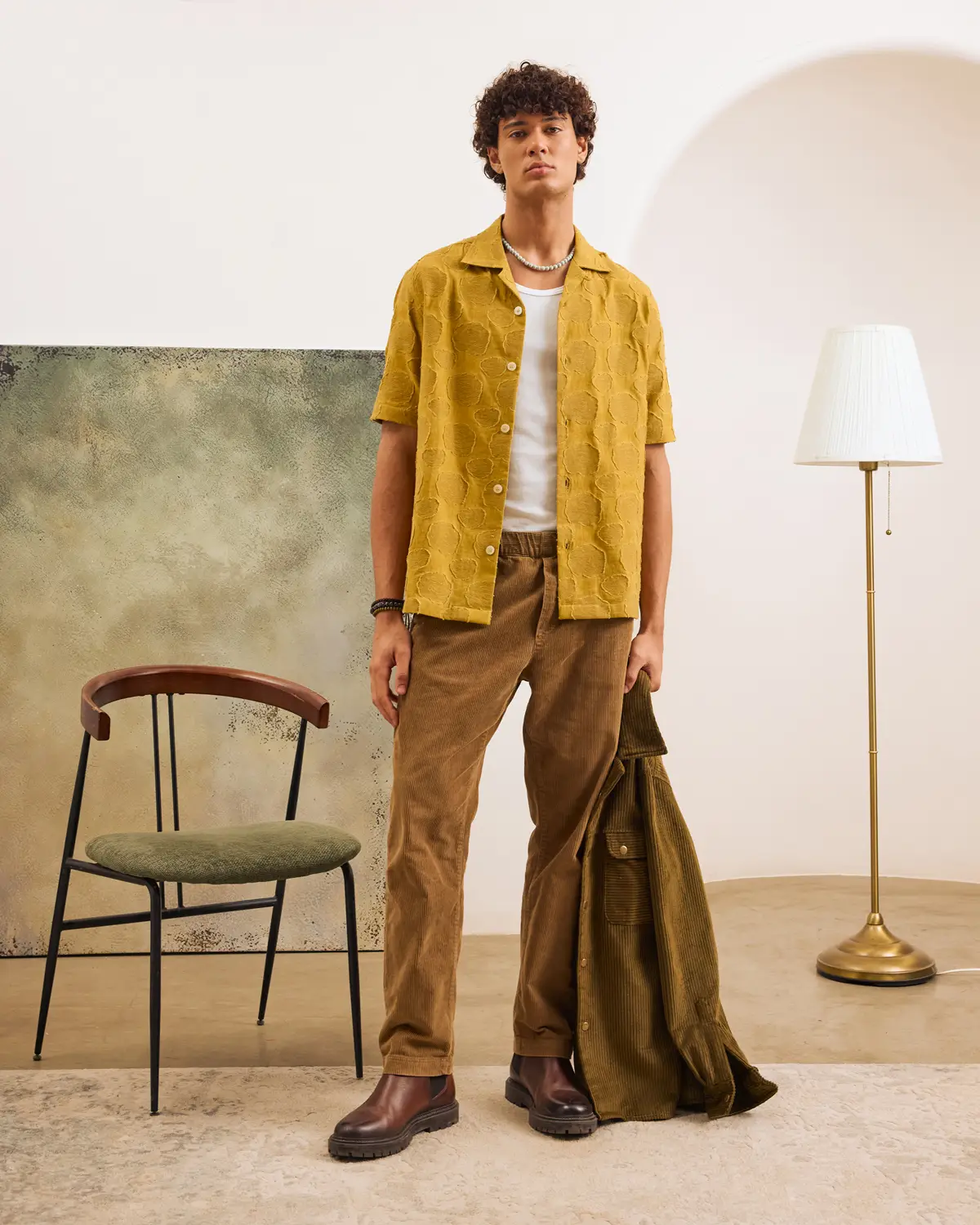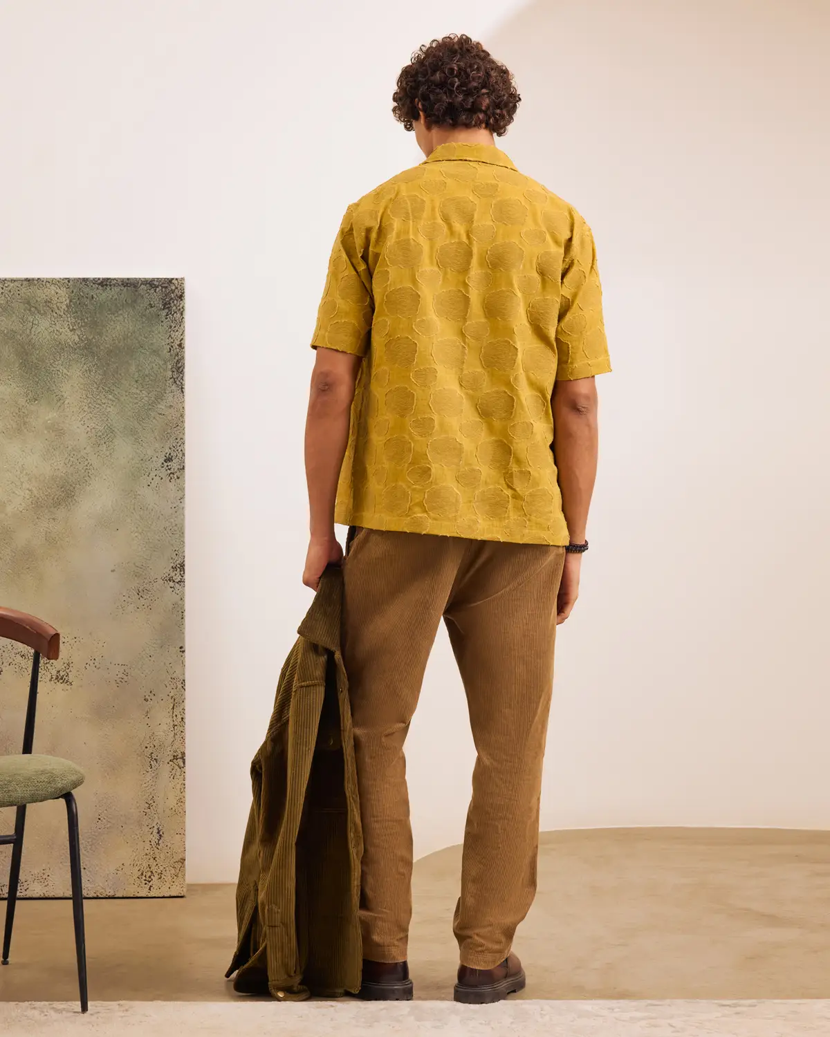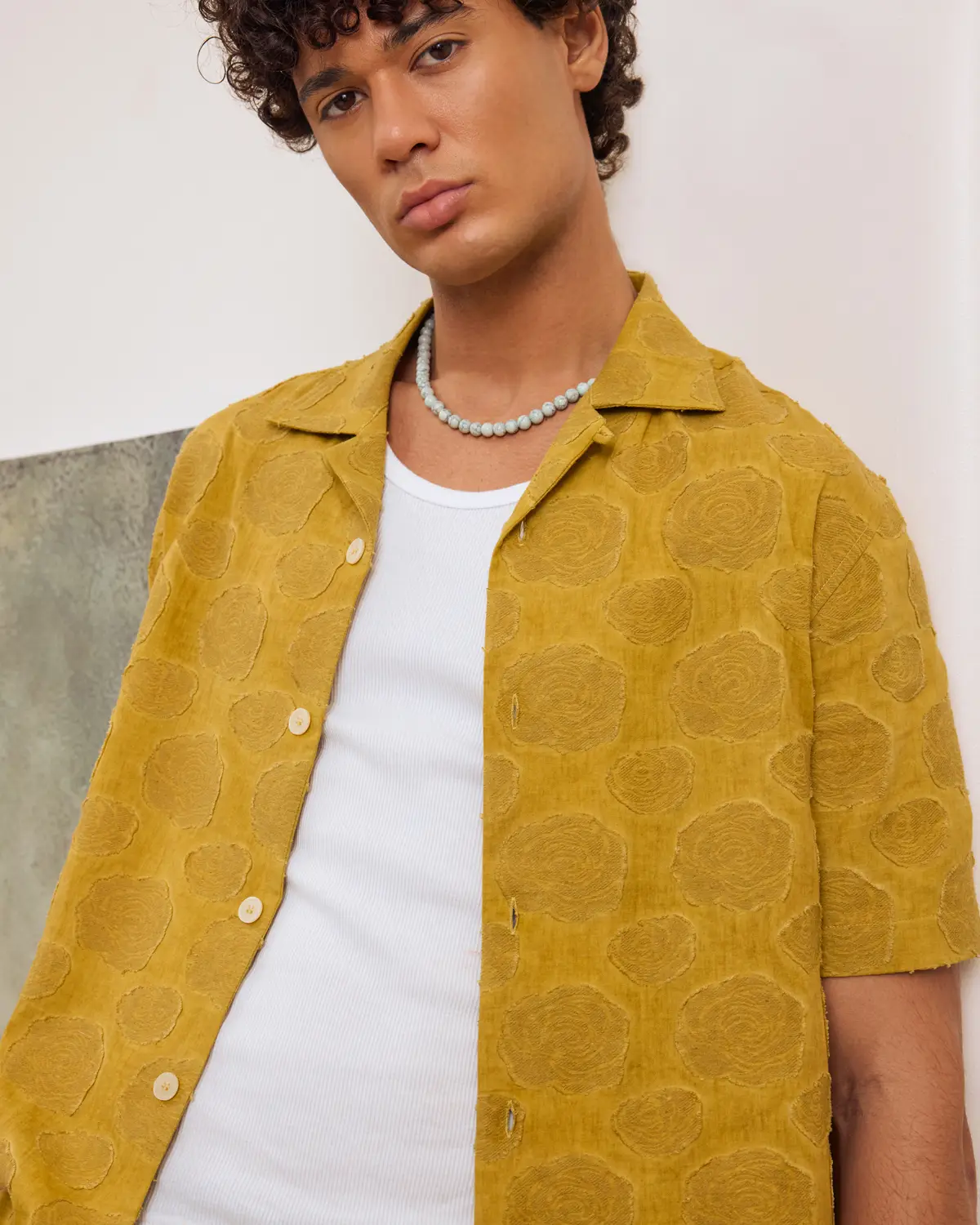 Short-sleeve shirt cut in a relaxed silhouette with an open collar. Crafted in a texture-forward fabric with a raised tonal pattern that adds depth through surface.